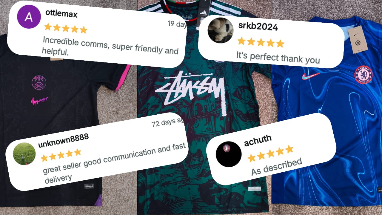 I started on vinted and on that profile (ak1sells) I have gained over 75 5 star reviews from customers who are extremely happy with the quality and price of the jersey.